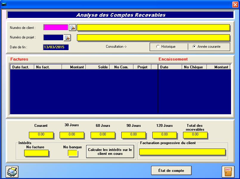- Suivi des recevables avec �tats de compte par courriel, prise de note dans la fiche du client et calcul d'int�ret.