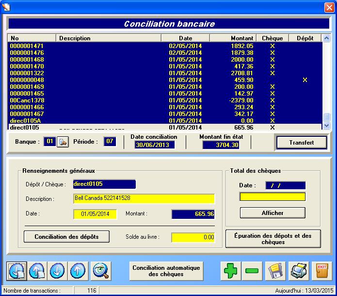 - Conciliation automatis� avec rapport de votre banque